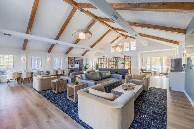 In Minnetonka, Little Black House led a strategic amenity renovation that elevated the clubhouse, fitness center, pool deck, and model unit to strengthen market positioning and resident appeal. Guided by a refined lakehouse-inspired aesthetic, the interiors were updated with durable natural materials, layered lighting, and flexible layouts that balance warmth with operational performance. The fitness center was modernized to enhance daily wellness, while the pool deck was reimagined as a destination-driven outdoor amenity that supports competitive differentiation. By maximizing the existing footprint and increasing perceived value, the repositioning delivers measurable support for leasing performance, resident retention, and long-term asset strategy.